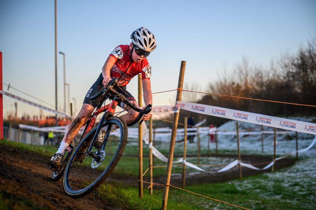 It was a great atmosphere at the National Championships with lots of competitors and spectators – and it was a very cold morning. The course slowly defrosted and some of the course was very muddy and slippery by early afternoon with other sections still being frozen. Two sections (the bridge and the steep off camber section) were removed from the afternoon races late morning. I was pleased to finish in 16th position despite having a saddle issue which meant I had to run some of the course. It has been great to race in all 6 national races this year with some very technical elements and challenging weather conditions at some! I look forward to racing again next year as a top year U14.
