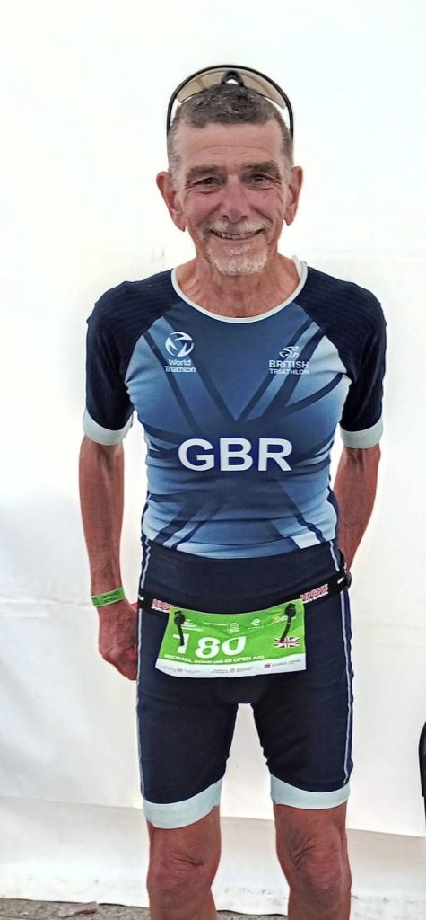 Then followed a 85.5k bike back to the city over a route more suited to a mountain stage of the Tour de France ! Hil after hill , with the temperature now soaring ! Then the 21k run which was made up of 4 laps , mostly on gravel paths along the river , BUT each lap ended with a steep climb through the cobbled , narrow city streets, with cheering ( & drunk) evening revellers lining the way !