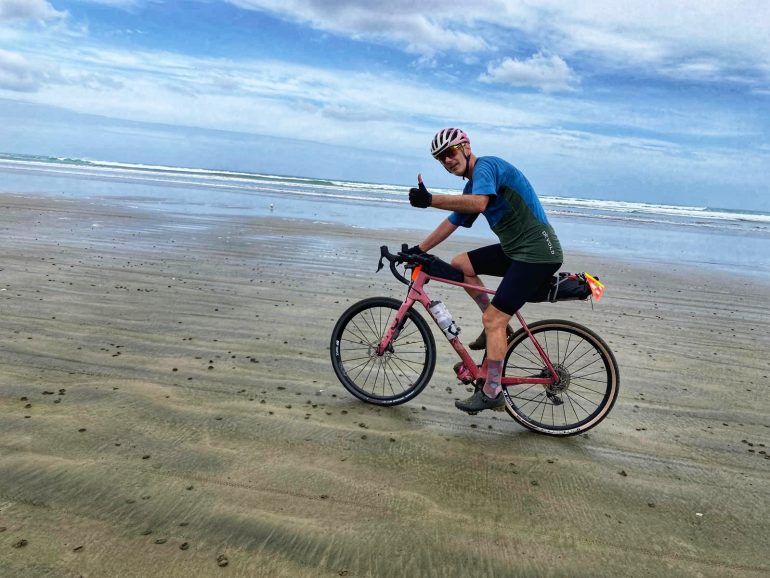 The North Island leg covers 1,538km and 18,433m climbing with terrain constantly shifting between beach, gravel, forest tracks, and quiet roads.
